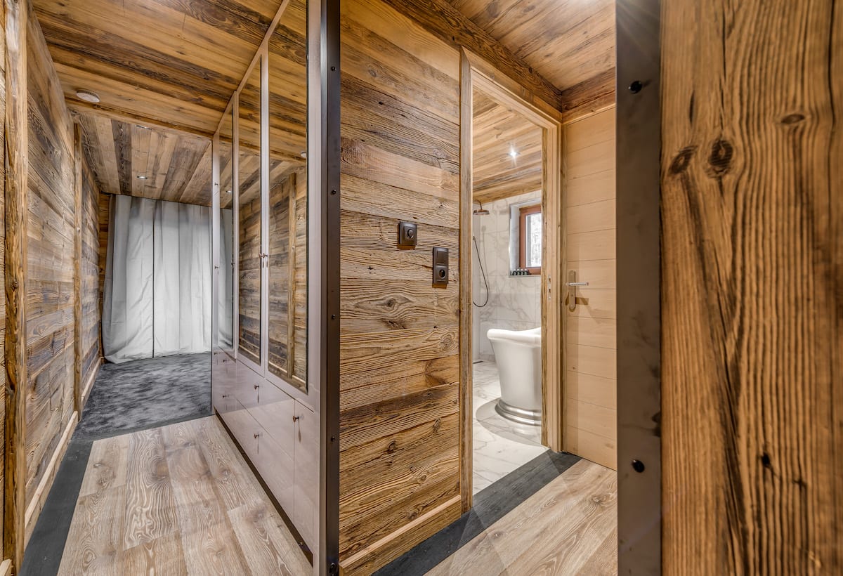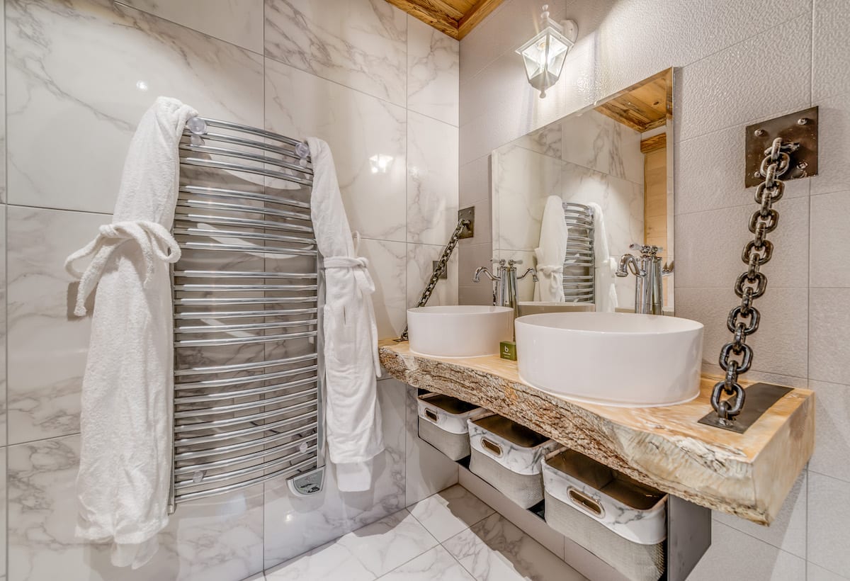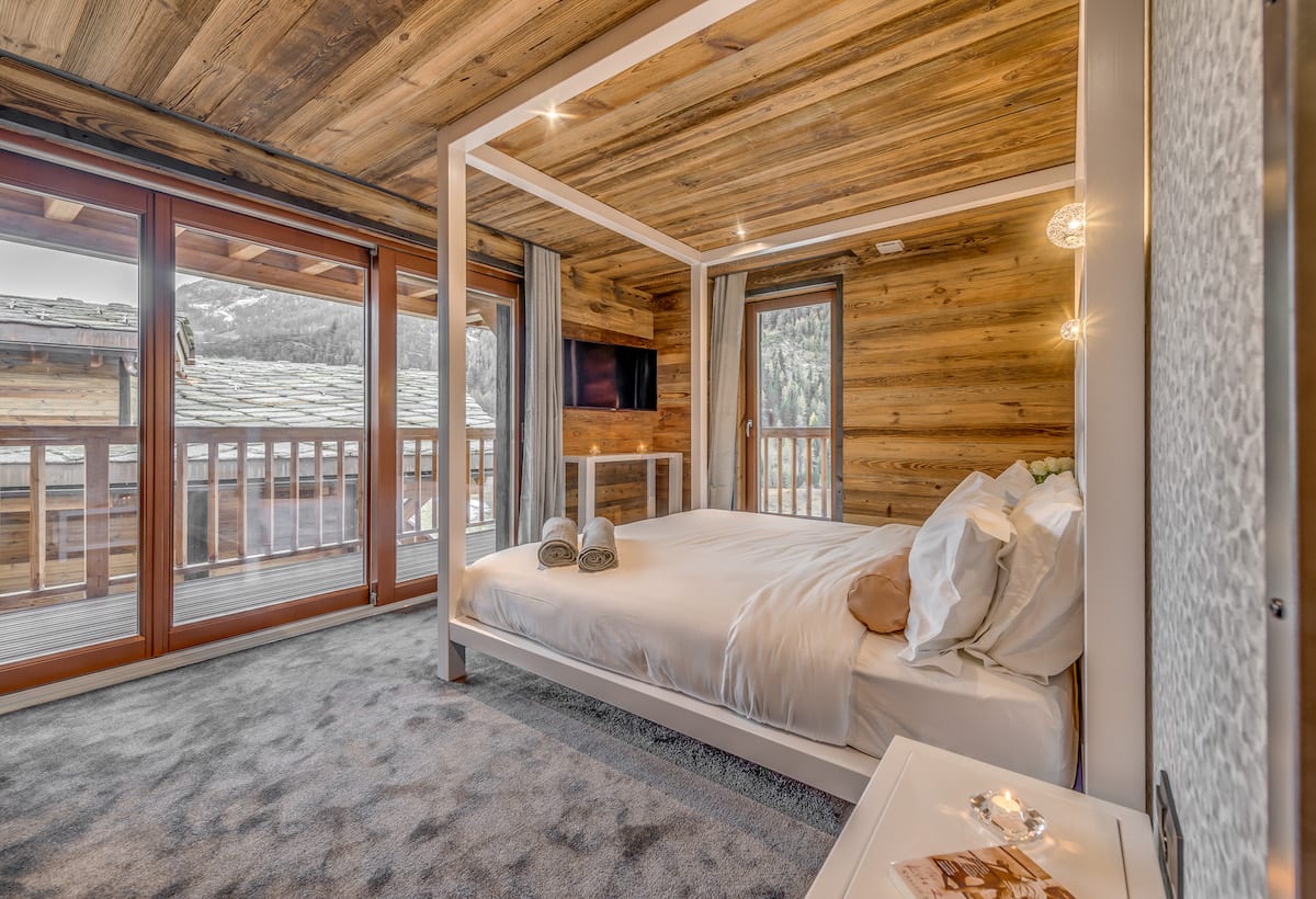 France, just below the main Tignes ski area. The chalet is vast, with 600m2 of complete luxury, sleeping up to 18 guests in 7 double en-suite bedrooms and a quad bunk room, which is great for kids.